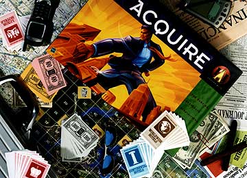 Geld wird bei Acquire durch das Kaufen von Aktien gemacht. Am Ende des Spiels kommt es zur Ausschüttung, je nachdem wie groß der zur Aktie gehörende Konzern beziehungsweise die Hotelkette auf dem Spielbrett geworden ist plus einer Prämie für den Mehrheitsaktionär.