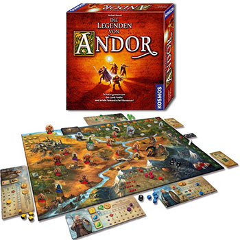 Menzel hat das Kooperationsspiel nicht neu erfunden. Der Herr der Ringe hat schon 2001 begeistert, 2004 kamen die Schatten über Camelot und 2011 war Pandemie an der Reihe. Seit Herbst 2012 rollt nun geradezu eine Welle an kooperativen Spielen auf uns zu, die man früher eher im „pädagogisch wertvollen“ Kinderspielbereich vermutet hätte. Und Dank der großen Vermarktungsanstrengungen von Kosmos etablierte sich Andor schon vor Erscheinen als Flagschiff dieses Neuheitenschubs.