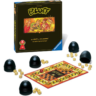 Mit Bluff liegt, ursprünglich bei F.X. Schmid verlegt, seit 1993 auch in Deutschland das bekannte amerikanische Spiel Liars Dice vor. Ein überschaubares und einfaches Regelwerk lässt jede schnell zur ausgebufften ZockerIn werden.