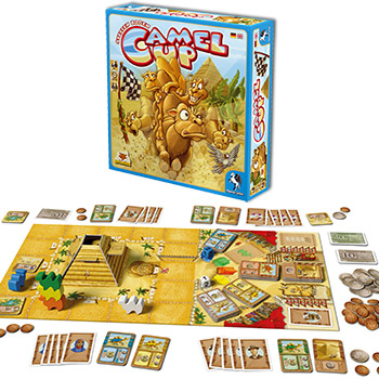 Es bleibt aber noch eine Frage. Wie heißt das Spiel eigentlich? Normalerweise steht das auf dem Schachtelcover. Aber was steht da eigentlich? Camel Cup oder Camel up? Wenn man unbefangene Leute fragt, lesen sie dort zuerst einmal Camel Cup. Und eigentlich müsste das auch richtig sein, auch wenn der Verleger etwas anderes meinte: schließlich will sich das Spiel auch verkaufen, was angesichts der spielerischen Qualität wirklich zu begrüßen ist. Und damit das klappt, ist es gut, wenn der Kunde den wirklichen Namen des Spiels kennt und erkennt. Doch leider könnte das Spiel auch Camel up heißen, weil sich der Grafiker Dennis Lohausen nicht richtig festlegen wollte.