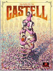 Zwei Casteller nehmen, einen Schritt laufen, eine Fertigkeit trainieren – das ist ein stimmiges Spielkonzept. Fazit: Castell ist soweit ein super Spiel. Soweit? Leider waren das noch nicht alle Regeln. In bis zu sieben Runden darf man noch eine Spezialaktion machen und dabei unter anderem Extraauftritte in bestimmten Regionen abwickeln, bei der es um bestimmte Pyramidenformen oder um komplizierte Fähigkeitskombinationen geht. Außerdem gibt es Regelungen, wie man dabei kleine Marker abgibt und wiederum bekommt, um am Ende nachzuweisen, an möglichst vielen Orten gewesen zu sein. Spätestens da landet man in der Schlussabrechnung in einem ziemlich überflüssigen Punktesalat. Wie schade. Ich behaupte gar nicht, dass das nicht funktioniert. Mechanisch ist alles völlig in Ordnung, aber das ist nicht die Kunst, die ein Spiel besonders werden lässt. Das gelingt vielen Autoren und Redaktionen. Aber ein Spiel soll nicht nur funktionieren. Sondern die wahre Kunst ist es, den Kern des Spiels so freilegen und so in das Zentrum stellen, dass ein unverstellter Blick möglich ist. Das wurde hier verpasst. Die Besonderheit von Castell wird durch zu viele Regulierungen getrübt, die sich als Ballast erweisen.