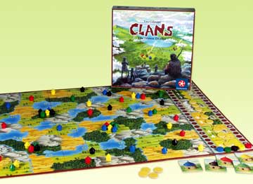 Clans ist ein schön gestaltetes Spiel mit einem großen Spielbrett, verpackt in einer kleinen Schachtel. Insbesondere für Drei-Personen-Runden, die ein 30 Minuten dauerndes Spiel suchen, ist es empfehlenswert.