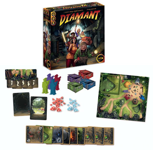 Alle spielen gleichzeitig, die Regeln sind einfach, der Ablauf ist fesselnd. Es dürfen sogar bis zu acht Leute mitmachen. Das sind die Dinge, die an Moons und Faiduttis Diamant begeistern. Und thematisch kommt die Edelstein-Suche in den gefährlichen Stollen gut rüber.