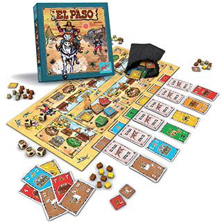 Fette Beute finden wir in den Häusern und Viehgattern der zu überfallenden Städte. Mit unseren Spielkarten versuchen wir, den Raubzug zu unseren Gunsten zu entscheiden. Wer zu hoch einsteigt, gewinnt nur ein kleines Zahlenplättchen. Und wer zu niedrig dabei ist, schwebt in Gefahr, ganz leer auszugehen. Doch noch sind die Plättchen keine Siegpunkte. Sobald per Würfel fünf Sheriffs im Ort sind, ist Schluss und man verliert die Plättchen wieder. Da ist es besser, rechtzeitig das Weite zu suchen, in die nächste Stadt zu reiten und trotz geringer Ladekapazität etwas Diebesgut mitzunehmen. Denn dort winkt ein günstiger Tauschkurs. El Paso ist ein attraktives Zockerspiel.