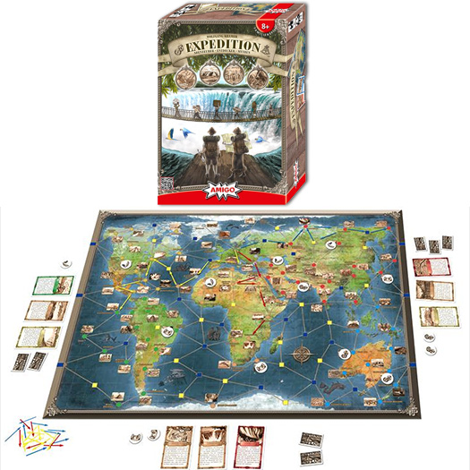 1985 ist dieses Spiel erstmals als Abenteuer Tierwelt bei Ravensburger erschienen. In einer zehn Jahre später erschienenen Neuauflage bei Queen Games ging es nicht mehr in die Tierwelt, sondern um Forschungsexpeditionen an rätselhafte und geheimnisvolle Plätze überall in der Welt. Als das Spiel damals auf den Essener Spieltagen vorgestellt wurde, hieß es – durchaus treffend – Terra X. Ungefragt fühlte sich aber das ZDF: Seine gleichnamige Fernsehserie Terra X berichtet genau von solchen rätselhaften Plätzen in der Welt. Das ZDF untersagte die Nutzung des Namens ihrer Dokumentarreihe, und so musste Terra X auf der Spiel ’96 mit abermals neuem Namen erneut vorgestellt werden. Das hatte sich gelohnt: Expedition wurde in die Auswahlliste Spiel des Jahres aufgenommen. 2005 ging das Spiel wieder zurück zum Ravensburger Spieleverlag. Der Name lautete nun National Geographic Expedition. Nun ist Expedition ins Amigo-Programm genommen worden.