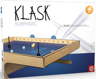 Ist dies eigentlich ein Spiel? Klar, alles Mögliche ist ein Spiel. Skat, Fußball, Billard – vieles wird in der deutschen Sprache unter dem Begriff „Spiel“ subsummiert. Aber darum geht es hier nicht. Das neueste Tischfußballmodell für die Kellerbar hat mit Brettspielen schwerlich etwas zu tun. Bei Klask ist das nicht so leicht zu beantworten. Immerhin ist das Spiel deutlich kleiner als ein Kicker. Die allermeisten Brettspiele überragt das schicke Holzgestell aber dennoch.