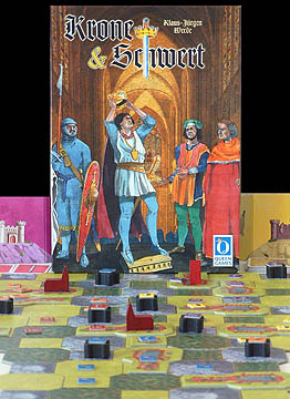Mit Krone & Schwert ist Klaus-Jürgen Wrede ein sehr abwechslungsreiches Spiel gelungen. Auf den quadratischen und achteckigen Ebenen-, Berg- und Waldfeldern können wir versuchen, mit ein wenig taktischen Überlegungen unser Gebiet zu erweitern. Die Spielkarten, die den Motor des Spielablaufs darstellen, sorgen für eine gehörige Portion Glück und prägen den eher unterhaltsamen Spielcharakter. Und wenn es zur Revolte gegen den König kommt, sind alle SpielerInnen gleichzeitig gefragt Krone & Schwert ist auch ein kommunikatives Spiel.