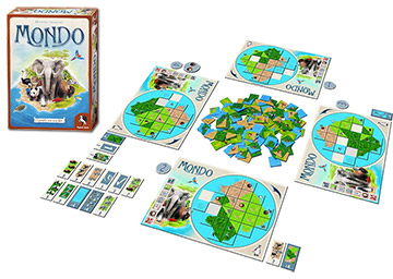 Eine Welt erschaffen! So groß ist die Aufgabe bei Mondo. Aber: die Welt ist eine Scheibe, eingeschlossen von Wasser. Auf diese Scheibe puzzeln wir kleine Plättchen mit Wüste, Wiese, Wald und Wasser. Dabei ist es ein wenig wie in Carcassonne: Die Landschaftskärtchen sollten zusammen passen.
