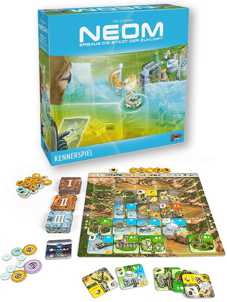 Spielerisch schließt Neom nahtlos an 7 Wonders an. Gezielt greift die Neuerscheinung alle Elemente des Vorbilds heraus, die einen Beitrag zum reibungslosen Spielablauf leisten.