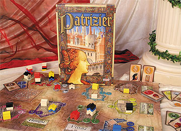 „Leichter Spieleinstieg“ ist das Zauberwort, mit dem viele Spiele aufwarten. Patrizier gehört dazu. Es ist in eine Carcassonne-ähnliche Schachtel gepackt worden, und es wird ein „interaktiver Schnellstart“ auf www.michaelschacht.net versprochen.