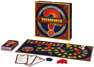 20 Questions erschien erstmals 1991 bei MB. Damals wurde es sogar eine Nominierung für das Spiel des Jahres ausgezeichnet. 1994 gabe es eine Neuauflage bei MB unter dem Namen Querdenker. Und Ende 2000 hat University den Titel als 20 Questions wieder herausgebracht. Viele Jahre später heißt der Titel erneut Querdenker.