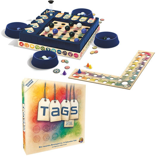 Tags ist die Neuauflage eines fast 25 Jahre alten Spiels: 1995 war Category erschienen, das damals eine Neuinterpretation von Stadt, Land, Fluss war. Bei diesem Spiel ging es um Hauptstädte, Republiken, Deutsche Flüsse und mehr als 200 weitere Kategorien.