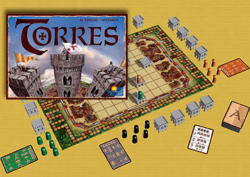 1999, mitten im eigentlich brettspielunfreundlichem Hochsommer, kam ein Spiel auf dem Markt, dass Torres heißt, als „Strategiespiel“ bezeichnet wird und von Burgen und Rittern handelt. Letzteres ist nicht sonderlich ungewöhnlich. Bemerkenswert ist jedoch, dass Torres ein Spiel des Duos Wolfgang Kramer und Michael Kiesling ist, das sich zu diesem Zeitpunkt gerade anschickte, in Berlin den goldumkränzten Pöppel für das Spiel des Jahres entgegenzunehmen. Tikal hieß der gefeierte Sieger dieser hochsommerlichen Preisverleihung.