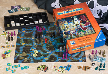 Das Spielbrett ist ein Wegeplan, der aus neun Spielplanteilen flexibel