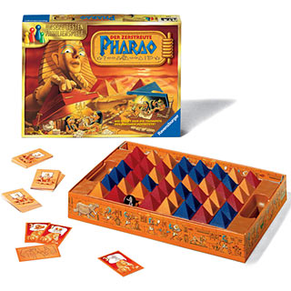 Alle, die Memory mögen, werden vom zerstreuten Pharao begeistert sein. Dieser hat nämlich in seinen Pyramiden diverse Schätze versteckt, die er nun nicht wiederfindet. 48 Pyramidenplätze gibt es im Spiel, allerdings sind nur 47 Pyramiden da. So ist immer ein Pyramidenplatz offen und damit sichtbar, ob dort ein Schatz liegt.